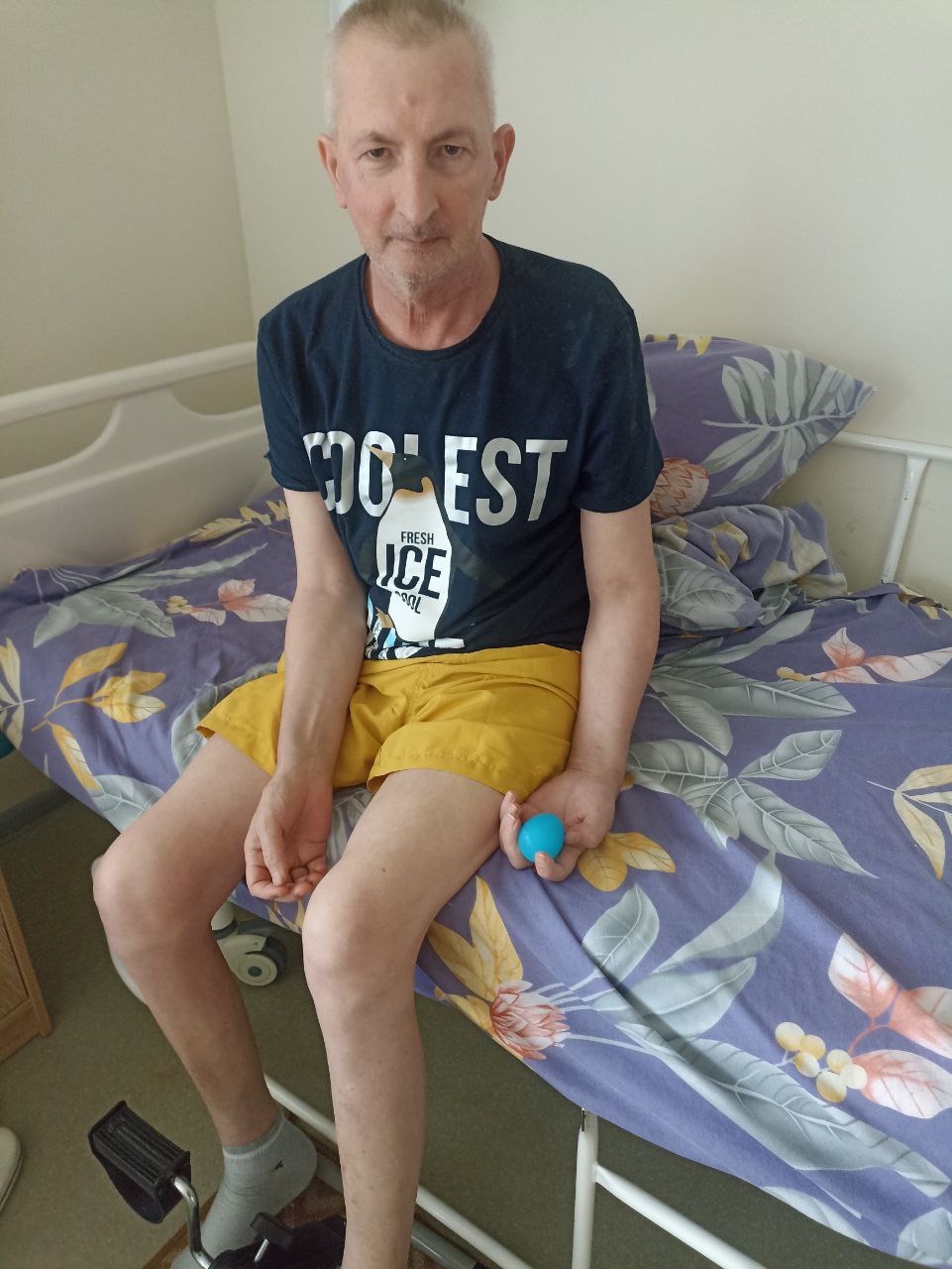 Занятие на велотренажёре, укрепляет мышцы и поддерживает их тонус. Мяч для тренировки кисти рук. Развивает сенсорную чувствительность и моторику. Массажный валик, для кистей рук. Укрепляет кистевые мышцы и мышцы предплечья. Занятие с маломобильными проживающими.