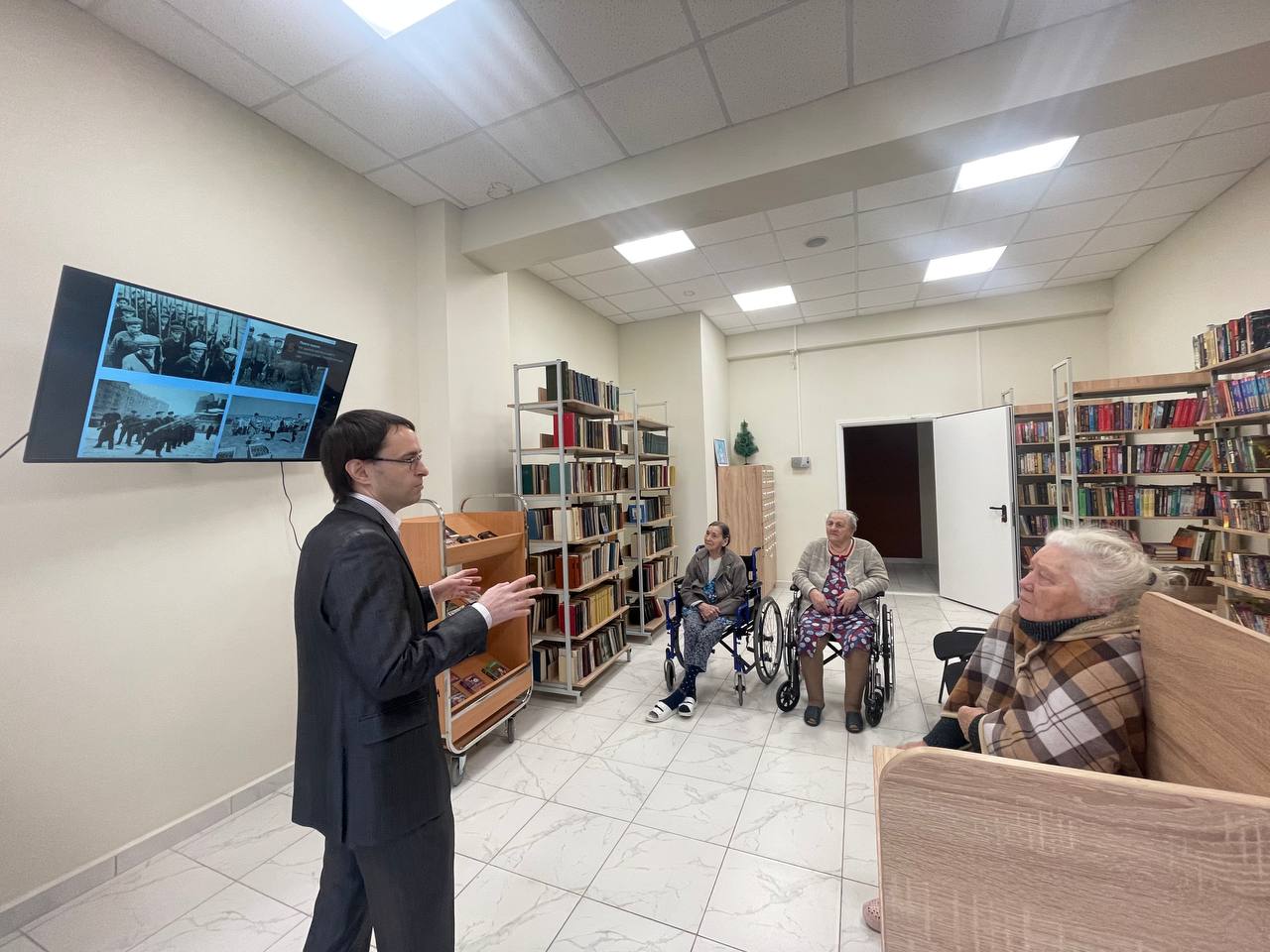Сегодня, 9 декабря, сотрудники городской библиотеки имени Ключевского провели для наших постояльцев литературный час «Битва под Москвой». Ведущий рассказал о самом масштабном сражении Второй мировой войны, состоявшемся 5 декабря 1941 года, когда немецко-фашистские войска стояли на подступах к российской столице, а ее жители вели тяжелые оборонительные бои.