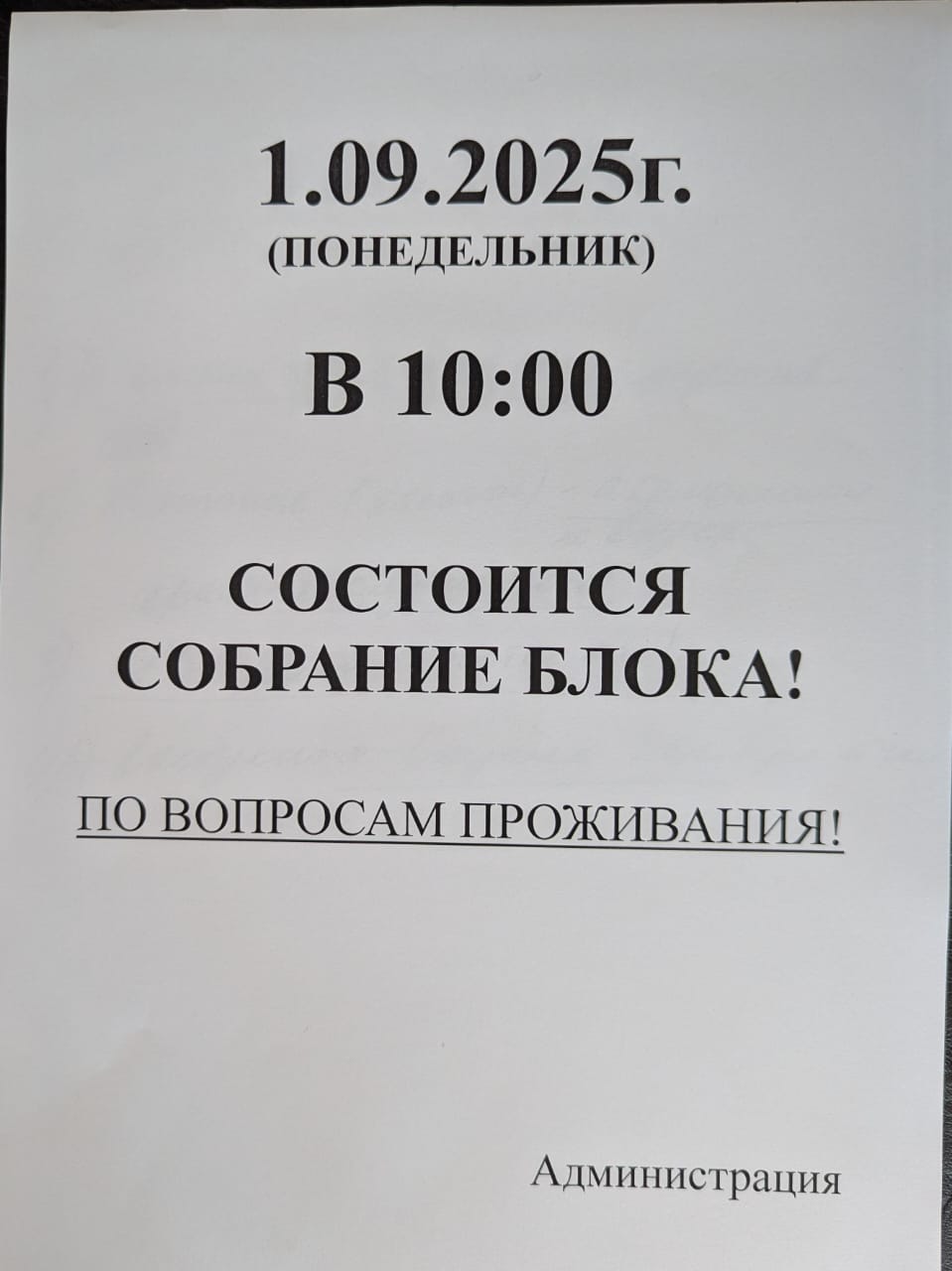 1 сентября состоялось очередное собрание блока. На собрании присутствовали проживающие, а также администрация учреждения. Были рассмотрены вопросы по созданию более комфортных условий проживания.