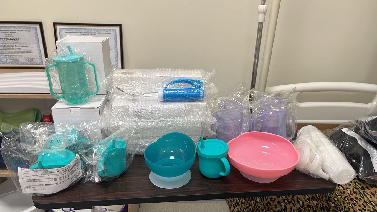Среди них: адаптационная посуда (тарелки на присосках, адаптационные вилки и ложки, поильники силиконовые с трубочкой, обычные - с крышкой) .