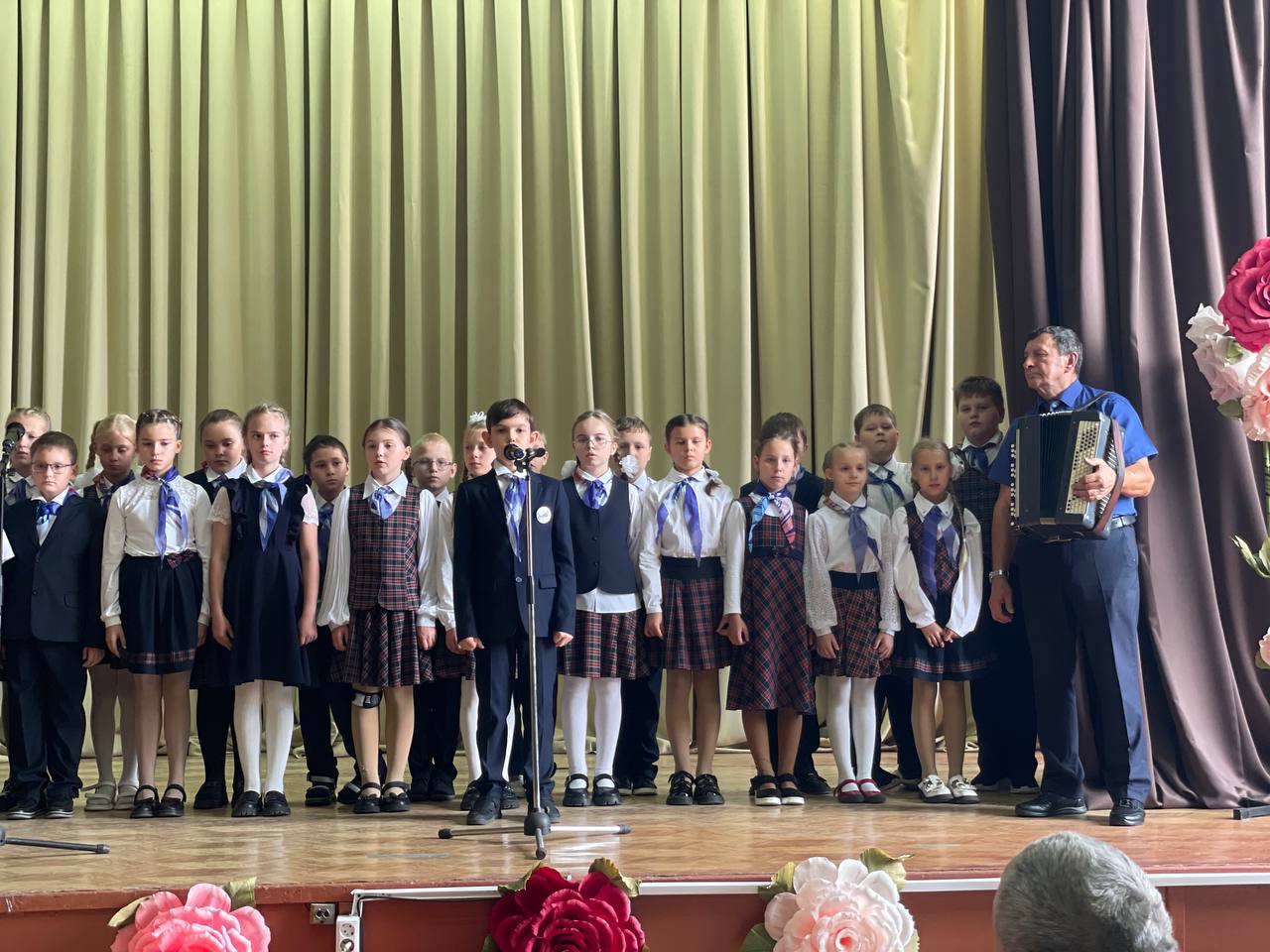 Со сцены актового зала ребята дали концерт, исполнив популярные российские песни под аккомпанемент баяниста, прочитали стихи и вручили зрителям подарки.