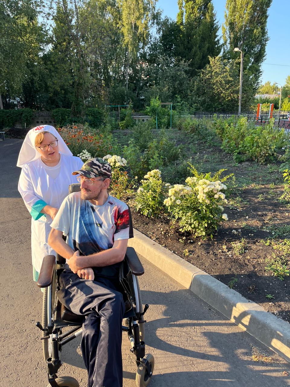 Прогулки на свежем воздухе и общение с волонтерами помогают проживающим отвлечься от повседневной жизни.