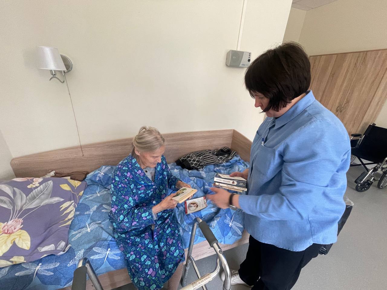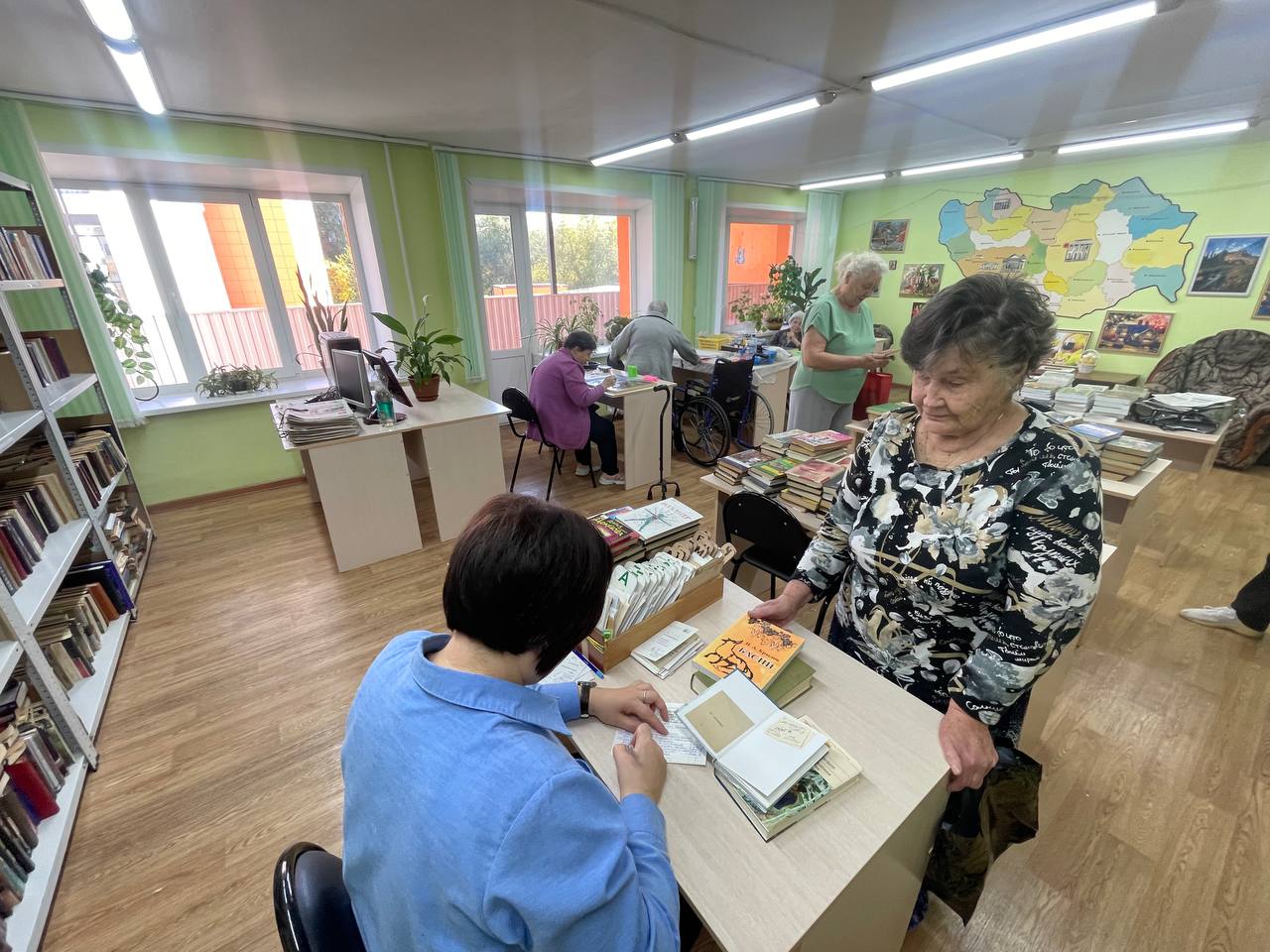 Сегодня - день обмена книг. Сотрудники областной библиотеки имени Лермонтова два раза в месяц выдают художественную литературу для проживающих в Доме-интернате.