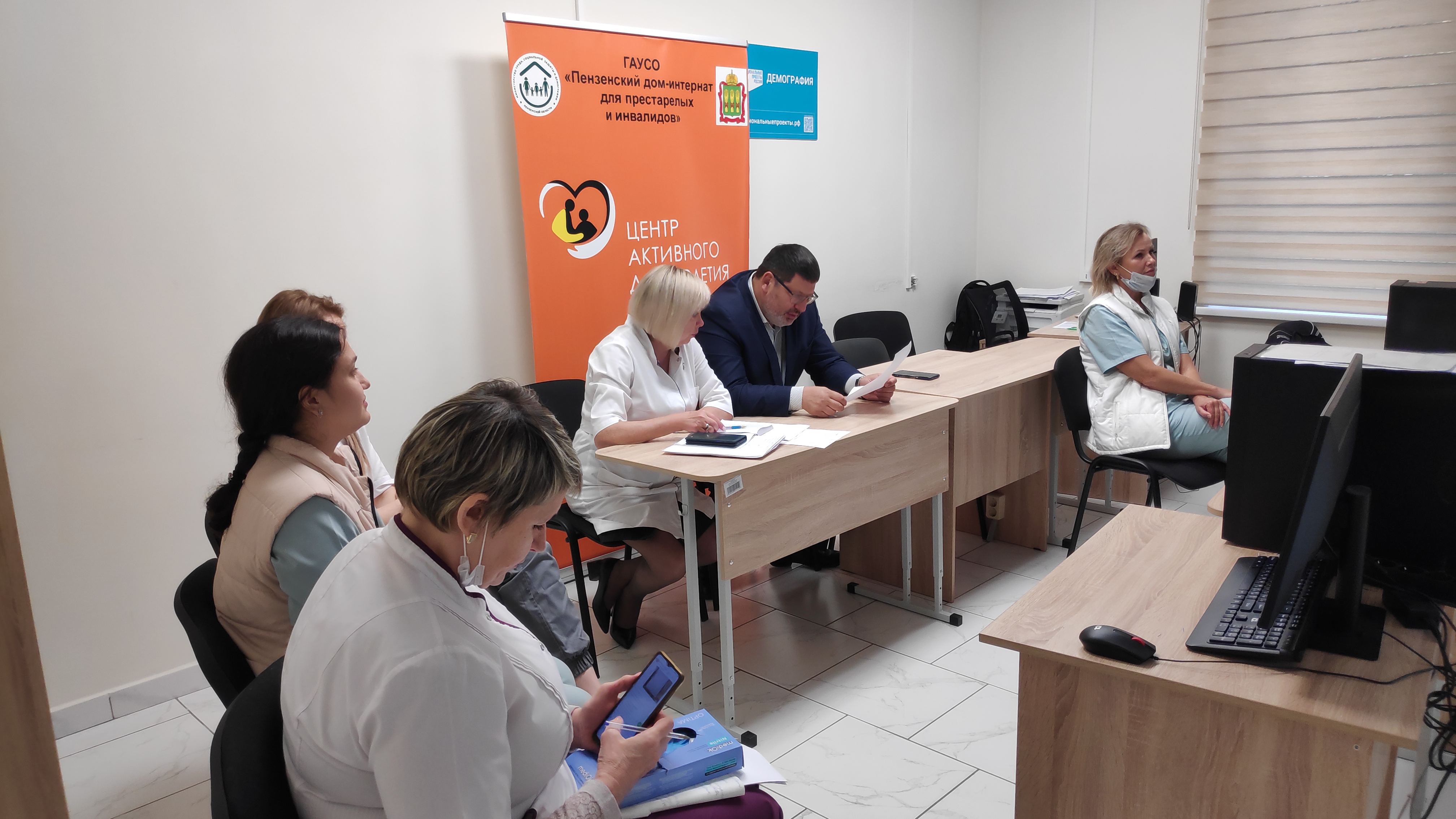Основной темой встречи стало подведение итогов обучения персонала по уходу за пожилыми людьми с участием руководителей социальных учреждений.