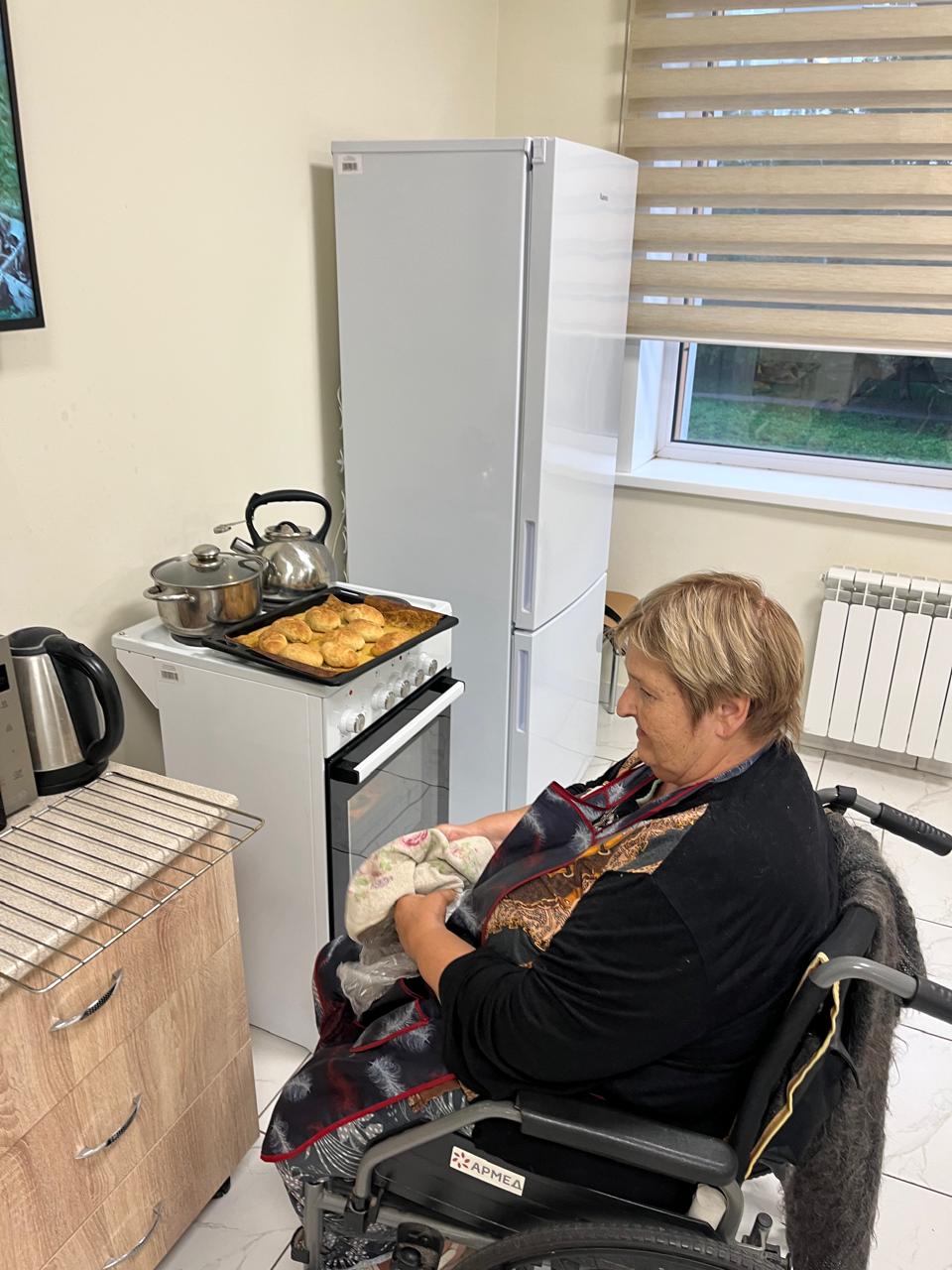 У наших проживающих есть возможность приготовить себе что-нибудь вкусненькое. Наша Надежда печет вкусные пирожки с яблоками, собранными в нашем саду.